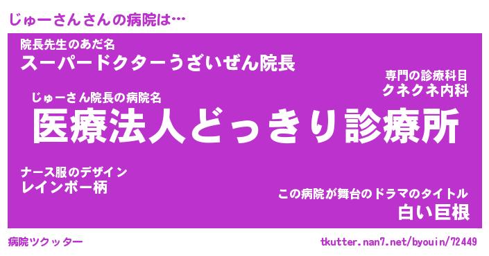 | 2回繰り返すあだ名 | 『じゅじゅ』『じじゅゅ』『いそいそ』 |