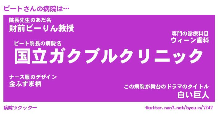 | 男性向けラノベタイトル風あだ名 | 『ビートの憂鬱』 |