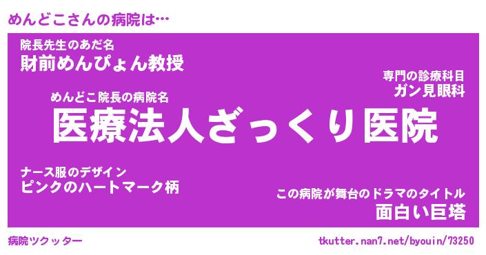 | ツイッター | めんどこさんのツイッターID『namakemono_kun』 |