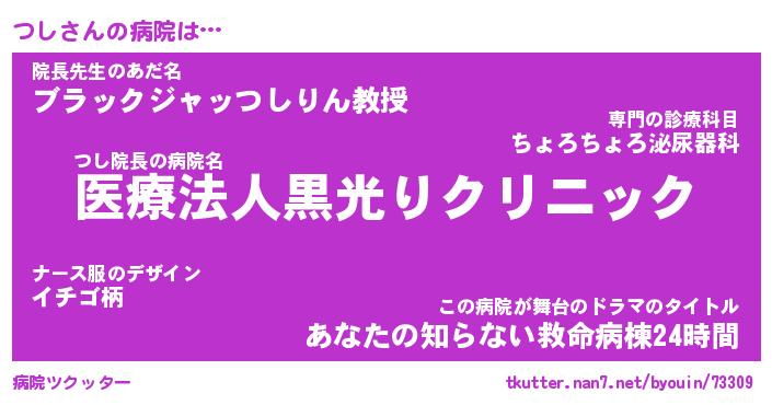 | ヒーロー風カッコイイあだ名 | 『スーパーツシ』『ウルトラつしマン』 |