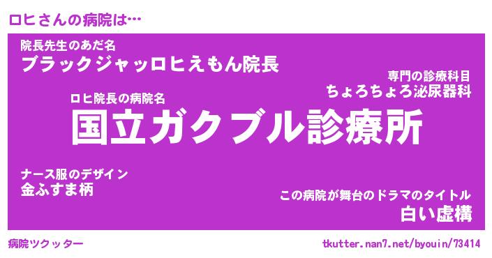 | ポケモン風あだ名 | 『ロヒチュウ』『ロヒダネ』『ヒロヒ』 |