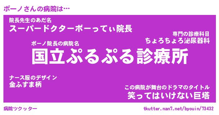 | 男性向けラノベタイトル風あだ名 | 『ボーノの憂鬱』 |