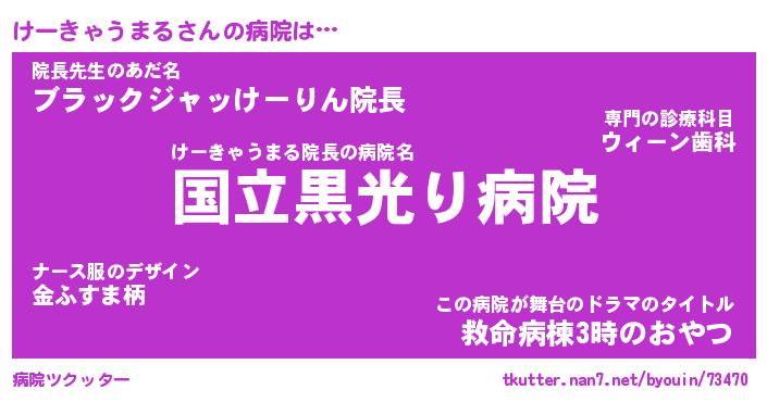 | 男性向けラノベタイトル風あだ名 | 『けーきゃうまるの憂鬱』 |