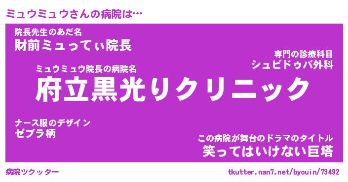 | 2回繰り返すあだ名 | 『ミュミュ』『ミミュュ』『にたにた』 |