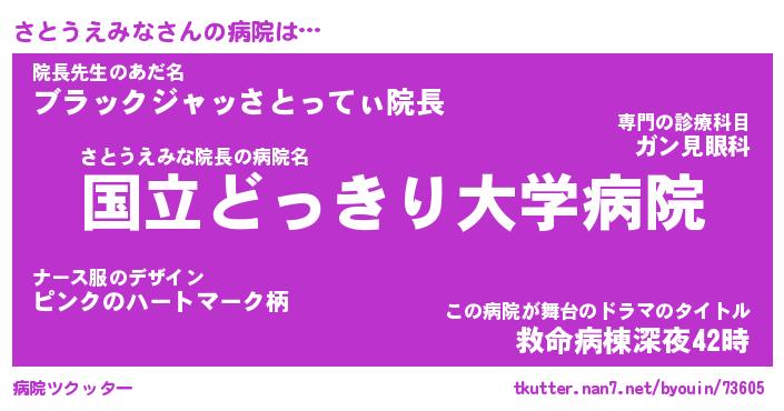 | 伝説のあだ名 | 『伝説のスナイパーさとうえみな』 |