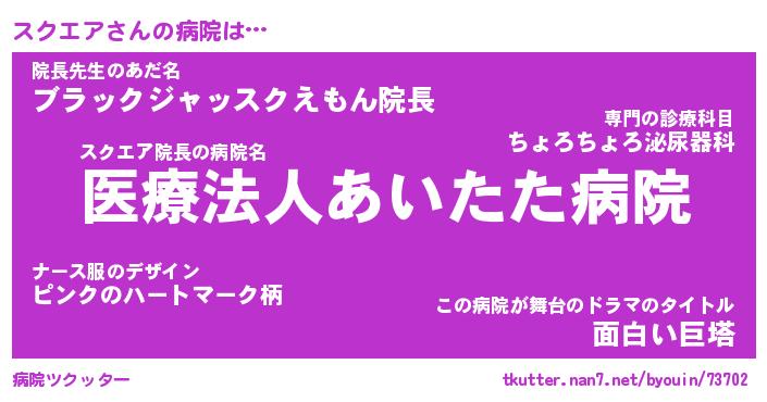 | 意味不明あだ名 | 『ペロリンスクエア』『永久保存スクエア』 |