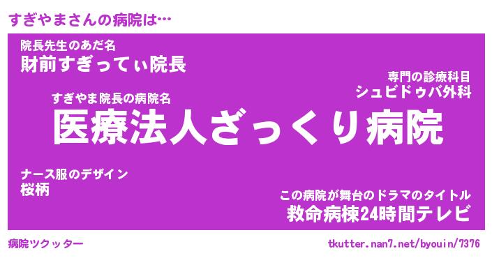 | 2回繰り返すあだ名 | 『すぎすぎ』『すすぎぎ』『がらがら』 |