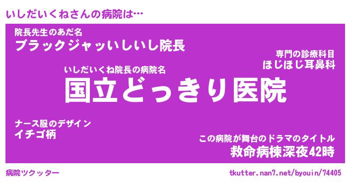 | ピコ太郎風あだ名 | 『イコ八郎』『ピイ太郎』『イシ三郎』 |