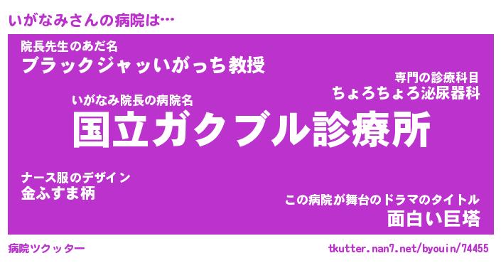 | 男性向けラノベタイトル風あだ名 | 『いがなみの憂鬱』 |