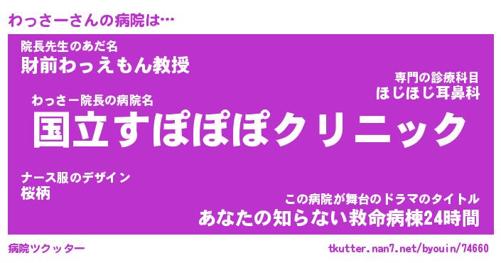 | 伝説のあだ名 | 『伝説のスナイパーわっさー』 |