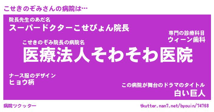 | 恥ずかしいあだ名 | 『プリティーこせきのぞみ』『こせっちょ』 |