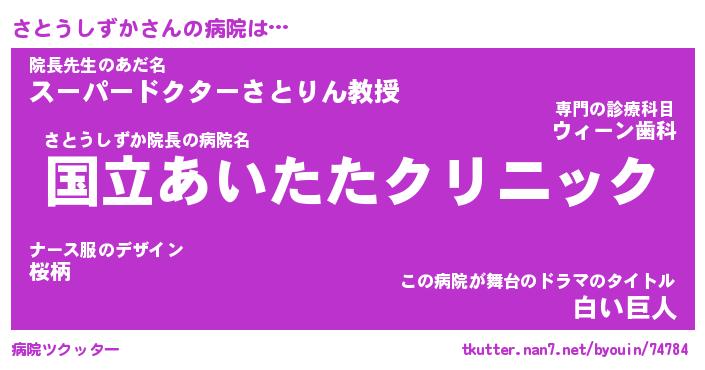 | 伝説のあだ名 | 『伝説のスナイパーさとうしずか』 |