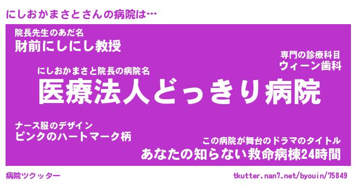 | 女子向けラノベタイトル風あだ名 | 『誰かこのにしおかまさとを説明してください! ~契約から始まるウェディング~』 |