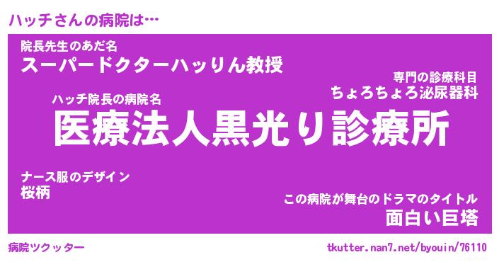 | ヒーロー風カッコイイあだ名 | 『スーパーハッチ』『ウルトラハッチマン』 |