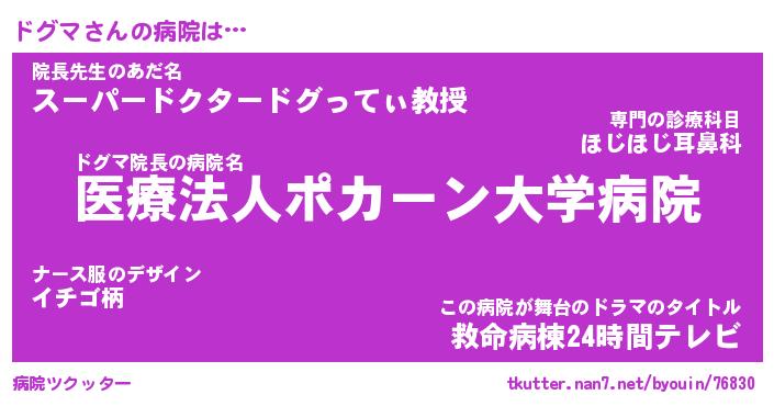 | ヘコむあだ名 | 『ドグにゅー』『つくし』『ドグっぺ』 |