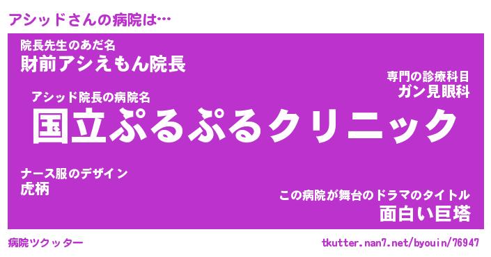 | 意味不明あだ名 | 『ペロリンアシッド』『永久保存アシッド』 |