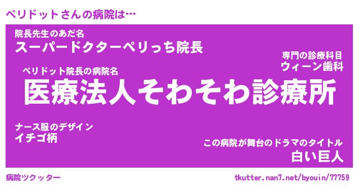 | ポケモン風あだ名 | 『ペリチュウ』『ペリドダネ』 |