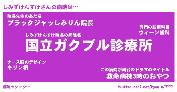 | 男性向けラノベタイトル風あだ名 | 『しみずけんすけの憂鬱』 |