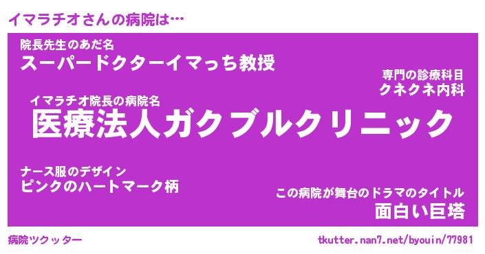 | 2回繰り返すあだ名 | 『イマイマ』『イイママ』『いじいじ』 |