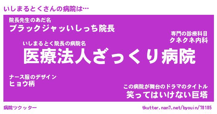 | ピコ太郎風あだ名 | 『イコ六郎』『ピイ史郎』『イシ史郎』 |