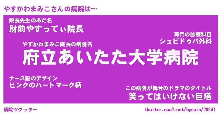 | 恥ずかしいあだ名 | 『プリティーやすかわまみこ』『やすちん』 |