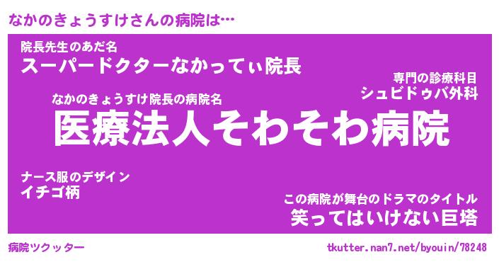 | 胡散臭い通販商品みたいなあだ名 | 『億万長者になれるブレスレット…その名も「なかのきょうすけ」』 |