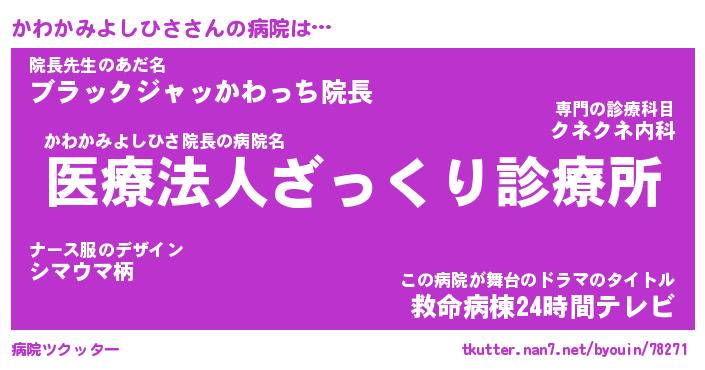| 肩書あだ名 | 『かわかみよしひさ御曹司』 |
