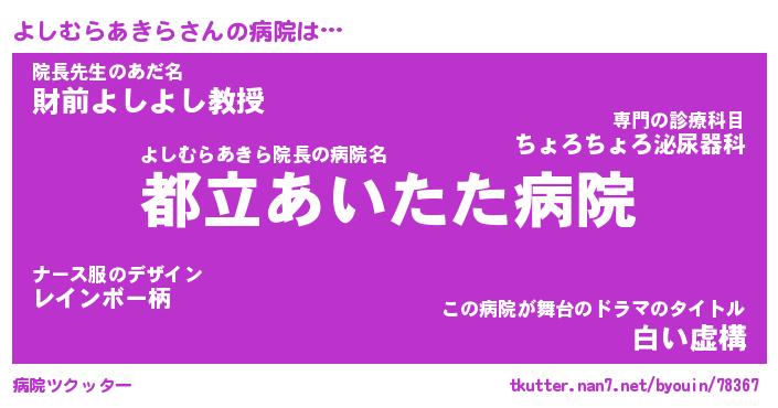 | 肩書あだ名 | 『よしむらあきら御曹司』 |