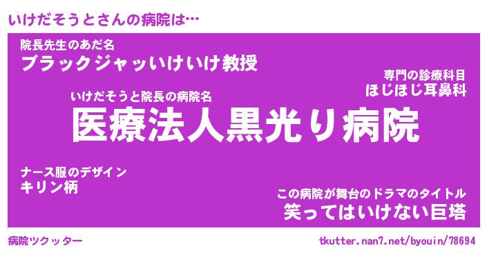 | 胡散臭い通販商品みたいなあだ名 | 『億万長者になれるブレスレット…その名も「いけだそうと」』 |