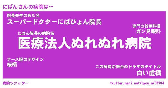 | 2回繰り返すあだ名 | 『にばにば』『ににばば』『ぬれぬれ』 |