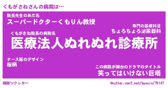 | ツイッター | くもがさねさんのツイッターID『dendenmushi_kun』 |