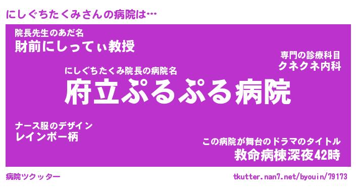 | 恥ずかしいあだ名 | 『プリティーにしぐちたくみ』『にしちん』 |