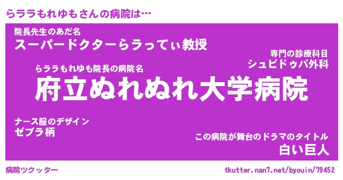 | 男性向けラノベタイトル風あだ名 | 『らララもれゆもの憂鬱』 |