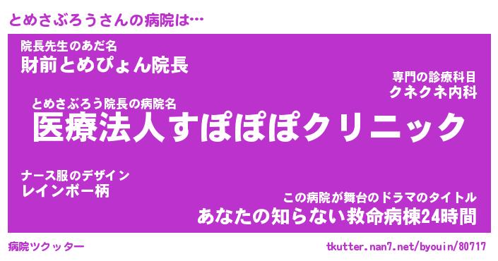 | 胡散臭い通販商品みたいなあだ名 | 『億万長者になれる霊験あらたかなお札…その名も「とめさぶろう」』 |