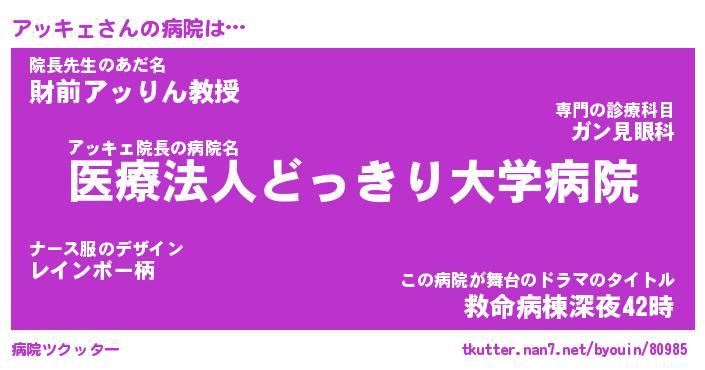 | 意味不明あだ名 | 『ペロリンアッキェ』『永久保存アッキェ』 |