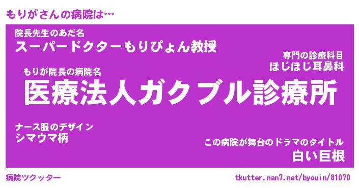 | ヘコむあだ名 | 『もりにゅー』『牛乳』『もりっ子』 |