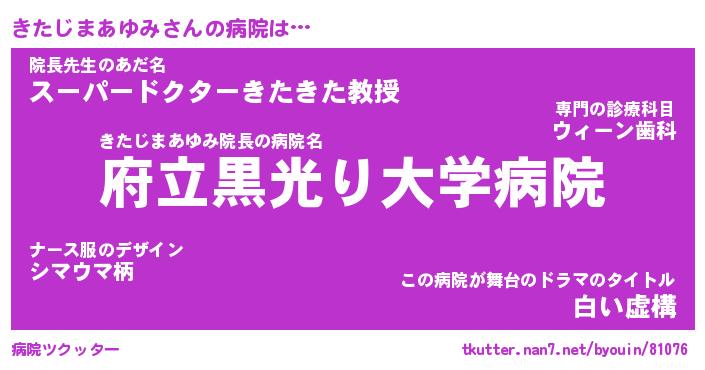 | 恥ずかしいあだ名 | 『プリティーきたじまあゆみ』『きたちん』 |