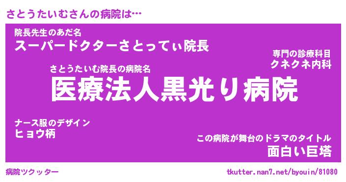 | 胡散臭い通販商品みたいなあだ名 | 『億万長者になれるブレスレット…その名も「さとうたいむ」』 |