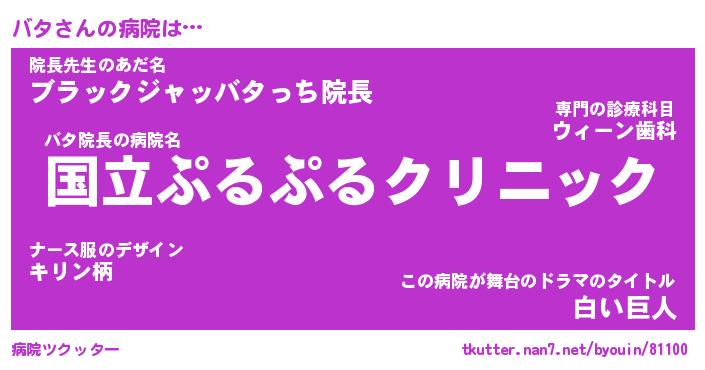 | 男性向けラノベタイトル風あだ名 | 『バタの憂鬱』『ノーゲーム・ノーバタ』 |