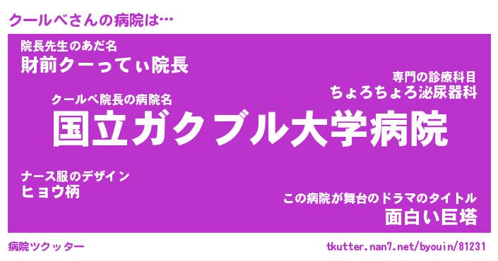 | 意味不明あだ名 | 『ペロリンクールべ』『永久保存クールべ』 |