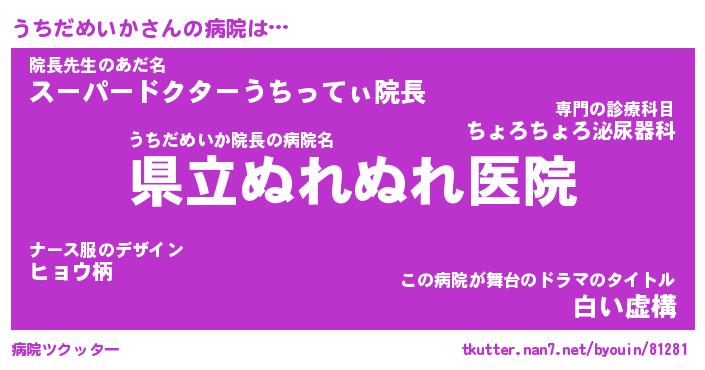 | 恥ずかしいあだ名 | 『プリティーうちだめいか』『うちっちょ』 |