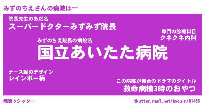 | ピコ太郎風あだ名 | 『ミコ十郎』『ピミ一郎』『ミズ六郎』 |