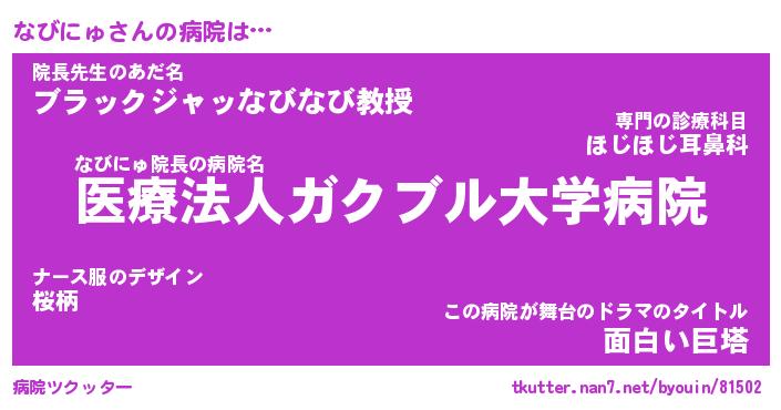 | ヘコむあだ名 | 『なびにゅー』『なまこ酢』 |