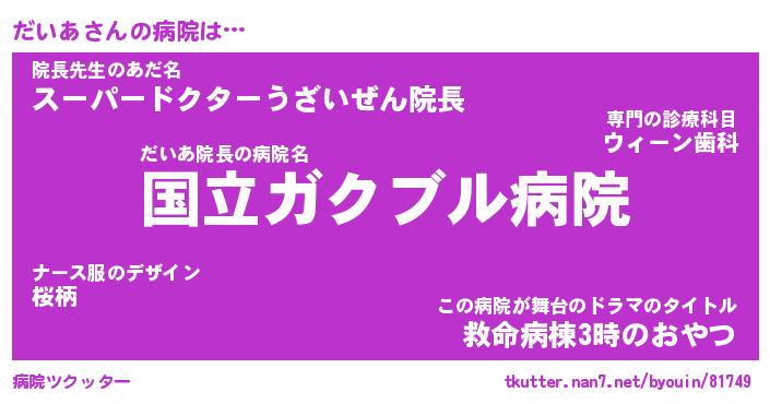 | 2回繰り返すあだ名 | 『だいだい』『だだいい』『ねとねと』 |