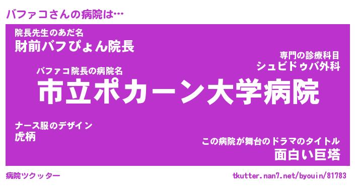 | ポケモン風あだ名 | 『バフチュウ』『バファダネ』 |