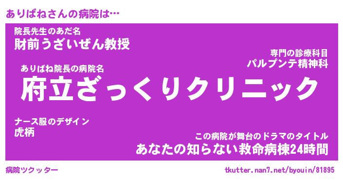 | 意味不明あだ名 | 『ペロリンありばね』『永久保存ありばね』 |
