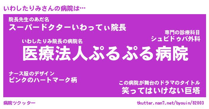 | 2回繰り返すあだ名 | 『いわいわ』『いいわわ』『あんあん』 |