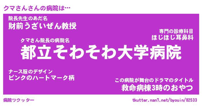 | 意味不明あだ名 | 『ペロリンクマさん』『永久保存クマさん』 |
