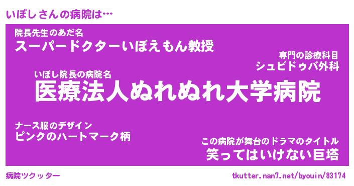 | ピコ太郎風あだ名 | 『イコ四郎』『ピイ一郎』『イボ四郎』 |