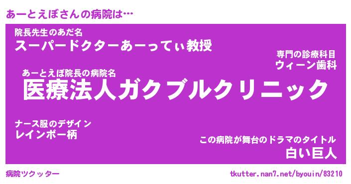 | 肩書あだ名 | 『あーとえぼ店長』『あーとえぼ大統領』 |